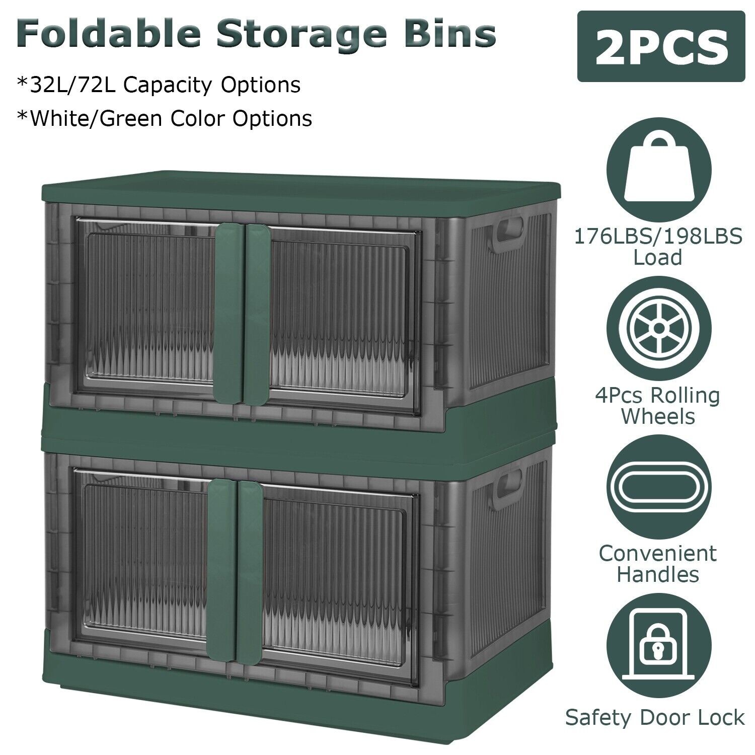 Foldable, Lidded, Lockable, Open Front, Rodent Proof, Stackable, Water Resistant, Waterproof, With Handles, With Wheels