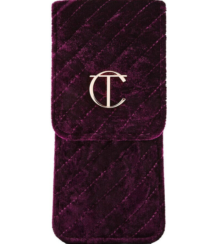 Beautify your complexation and eyes with this Charlotte Tilbury mini brush set. encased in a chic velvet clutch,  this makeup brush set is great for effortless desk to disco transformation!