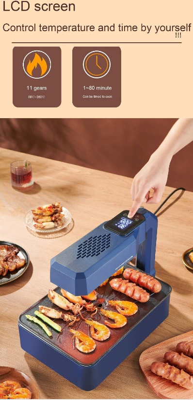 Feature: 1.Heat pipe heating Control the temperature of grease, reduce oil fume, heat light far infrared heating, and heat up faster. 2.Surround heating The chassis is heated around, and the upper and lower exhausts are evenly exhausted for heat dissipation, which has a long service life and a longer use time. 3.LCD liquid crystal screen Control the temperature by yourself, easily realize the freedom of barbecue, easy to operate, and control the deliciousness by yourself 4.Smokeless BBQ Don't worry about oil fumes, the best choice for family gatherings, colleagues' dinners, one person's food. Specification: Voltage: 110VRated power: 850W Touch screen mode: LCD touch screen Product color: Blue Product size: 37 x 22 x 27cm = 14.56 x 8.66 x 10.62 inch Package include: 1 x Electric Infrared Grill Note: Due to the different monitor and light effect, the actual color of the item might be slightly different from the color showed on the pictures. Thank you! Please allow 1-2cm measuring deviation due to manual measurement. |