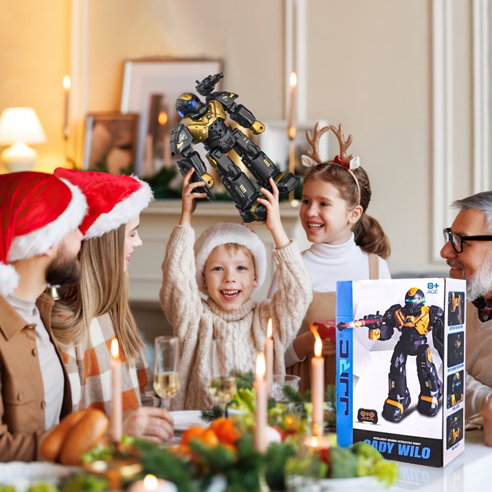 Description: Febfoxs RC robot toy is an amazing Christmas or birthday gift for 3-10 years old boys and girls. Looking for a fun educational toy for your baby? Febfoxs RC robot toys maybe impress your kids. The smart robot built-in sings, stories, science knowledge and English learning modes, only need to press the button on the RC controller, the toy robot will bring your kids into a funny playing world.