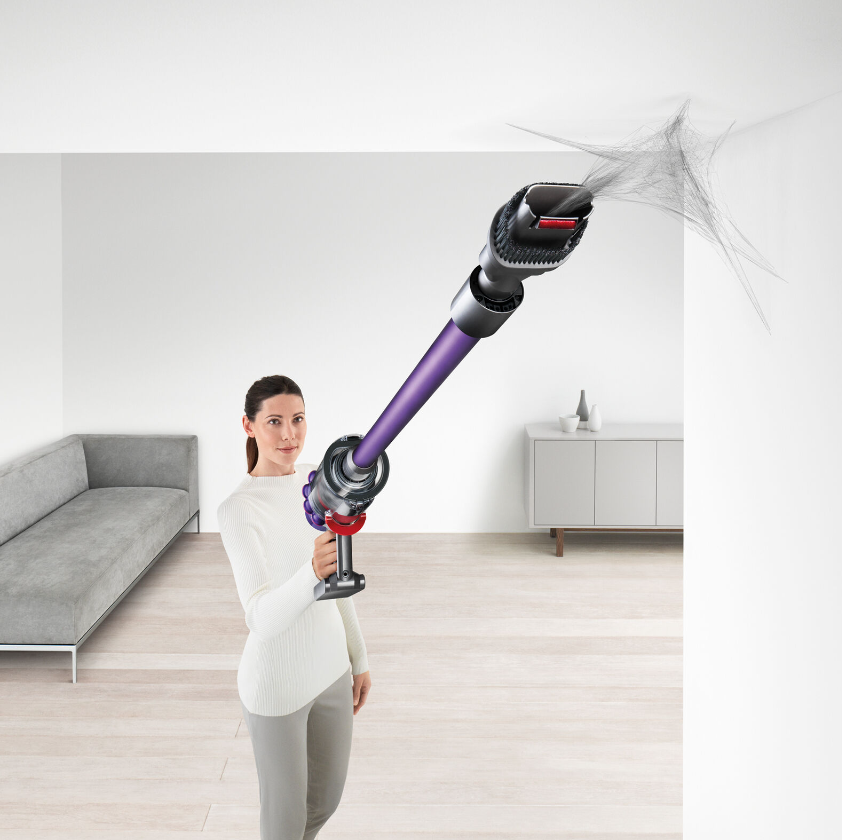Powered by the Dyson digital motor V10, 14 cyclones, Fade-free power, Whole-machine filtration, Acoustically engineered, In-line configuration, Quickly transforms to a handheld, 'Point and shoot' hygienic bin emptying