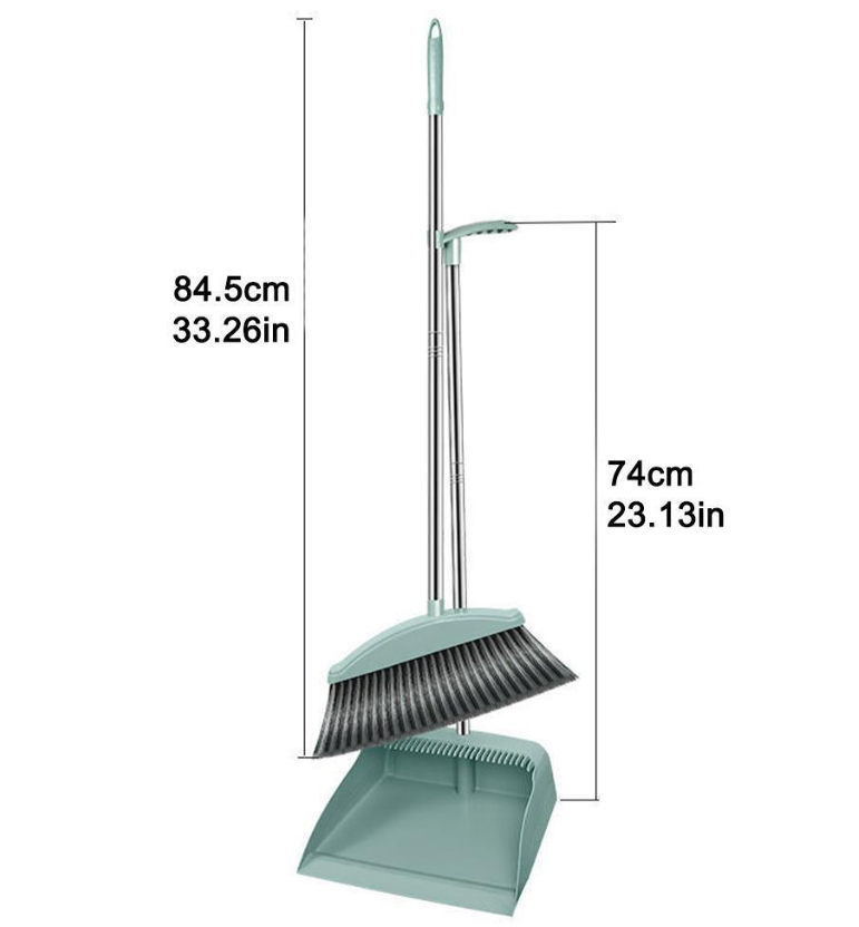 3.Ergonomic design: The broom handle is designed with an ergonomic grip, making it comfortable to hold and use for extended periods. The dustpan handle is also ergonomically designed, allowing for easy and comfortable use without straining your back or wrists.