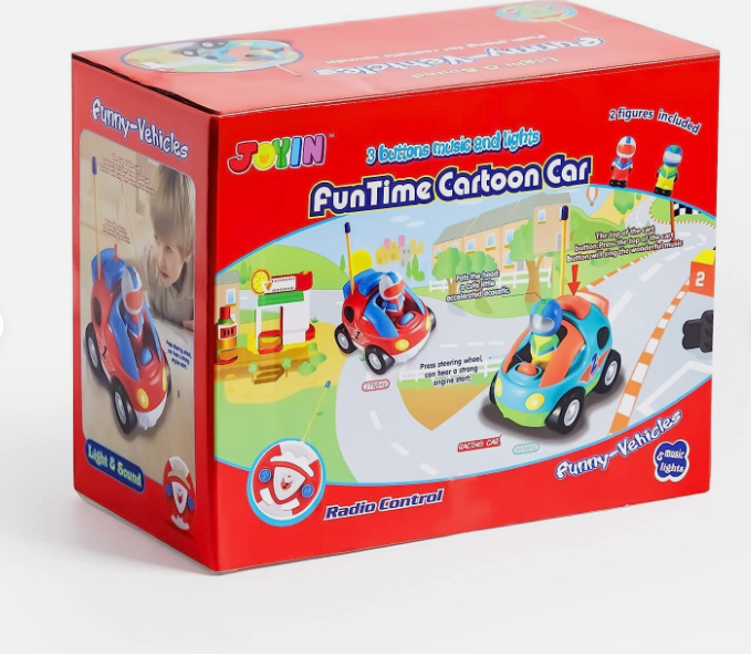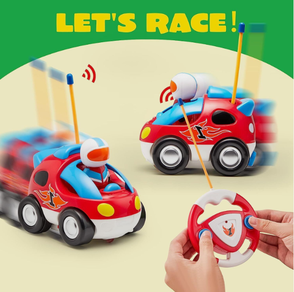 • Race Car Radio Control Toddler Cars Includes 2 Cartoon Radio Control Race Cars with Music and Sound Features, 2 Different Removable Action Figures and 2 Remote Controls with Forward and Reverse Left Channels.