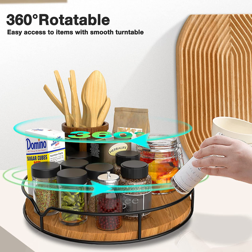 • This lazy susan turntable is a revolving device which can rotate 360°smoothly and quietly, built-in handles makes it easy to grip and move