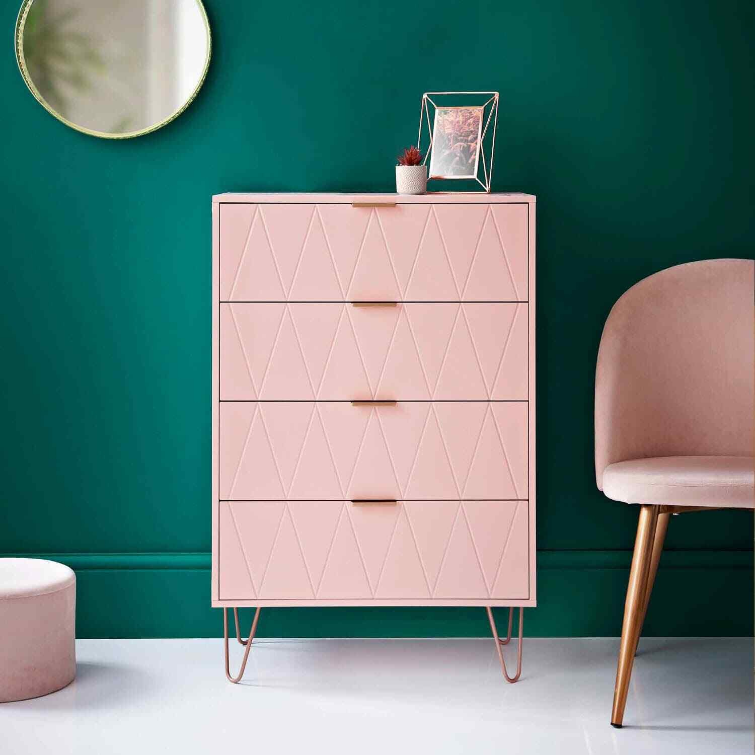 NEW 4 Drawer Chest & 2 Drawer Bedside Table With Gold Legs Bedroom Furniture