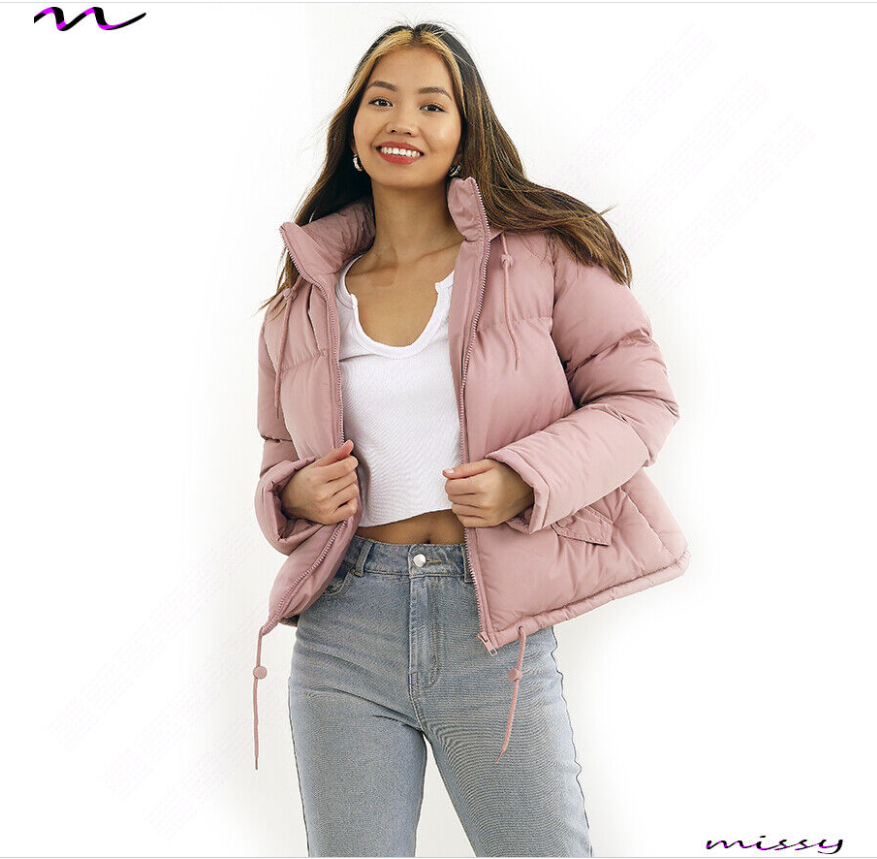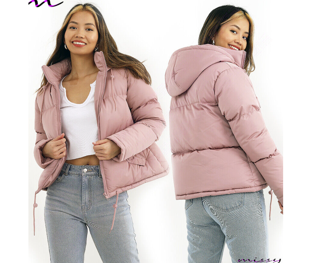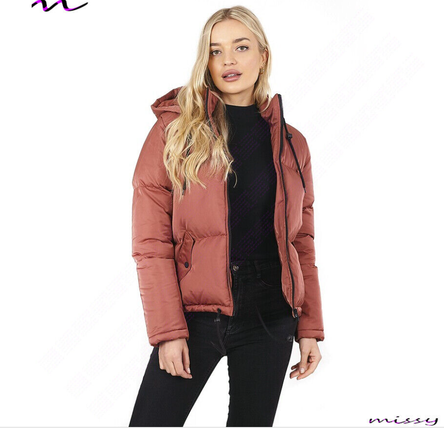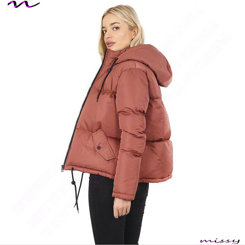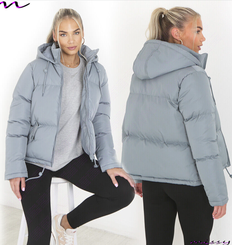 NEW WOMENS LADIES SHORT QUILTED WINTER COAT PUFFER HOODED JACKET PARKA SIZE