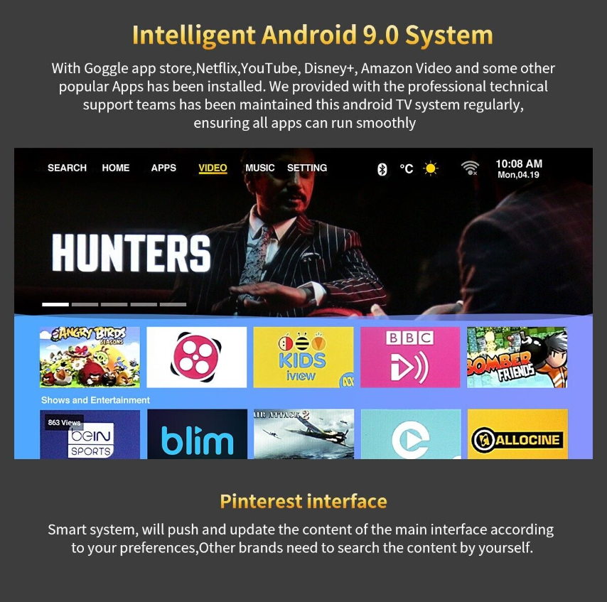Portable Android 9.0 Proyector Native 1080p Home Theater 4K Smart Projector BT