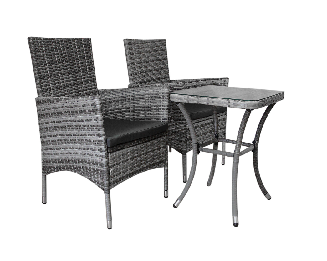 Designed for maximum style and comfort, this exquisite bistro set has 5cm thick cushions, seats 2 people and is sure to be the perfect centrepiece for any garden tea party. Transform your garden into a private paradise and be the envy of all your friends with this premium seating set. The easy-to-assemble flat-pack furniture enables you to relax outside with a drink in little to no time.