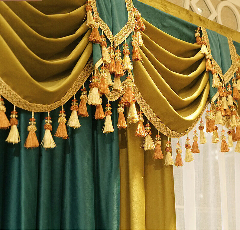 Stunning European luxury velvet green cloth blackout curtain valance drape B769*