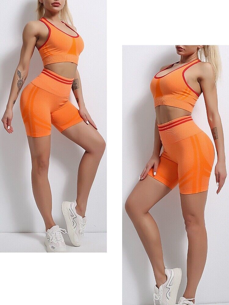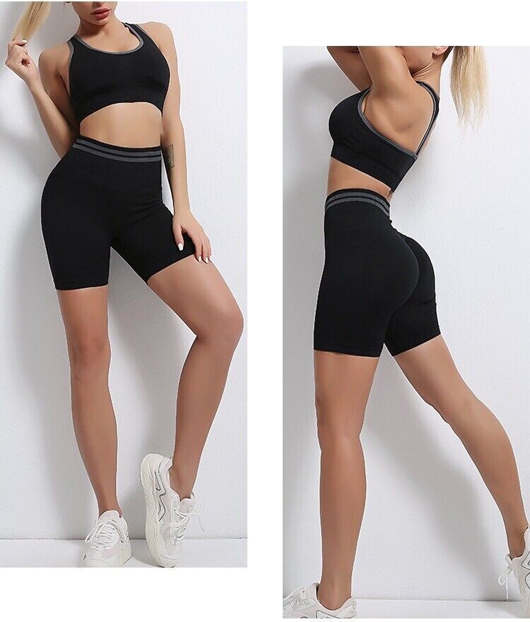 Womens Workout Yoga 2 Piece Outfits High Waist Shorts Sports Bra Gym Clothes Set