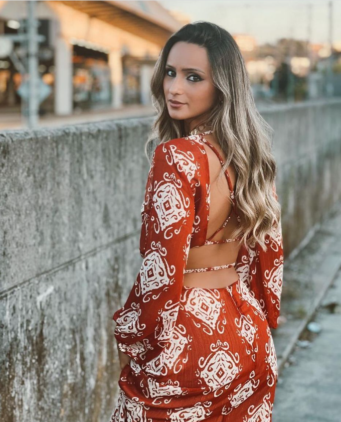 Adjustable, Contrast Print, Cut Out, Elasticated Trims, Lightweight, Lined, Long Sleeves, Metallic Thread Detailing, Open Back, Opening At The Waist, Puff Sleeves, Thin Elastic Straps, V-neck, Zip